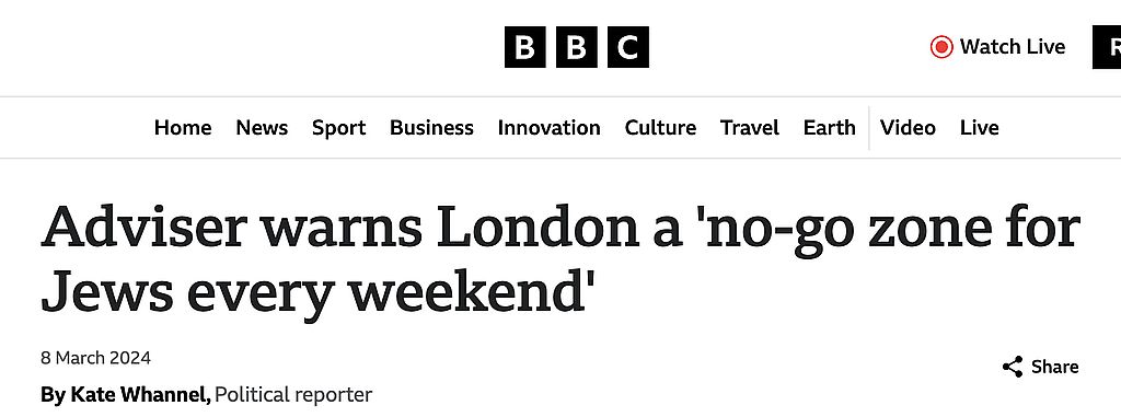 En Londono ĉefaj amaskomunikiloj parolas tiel Ĉiutaga nun malfermita al neireblaj zonoj por judoj. Ĉi tiuj estas areoj ene de Londono, kiuj eĉ ne estas sekuraj por judoj eniri.
